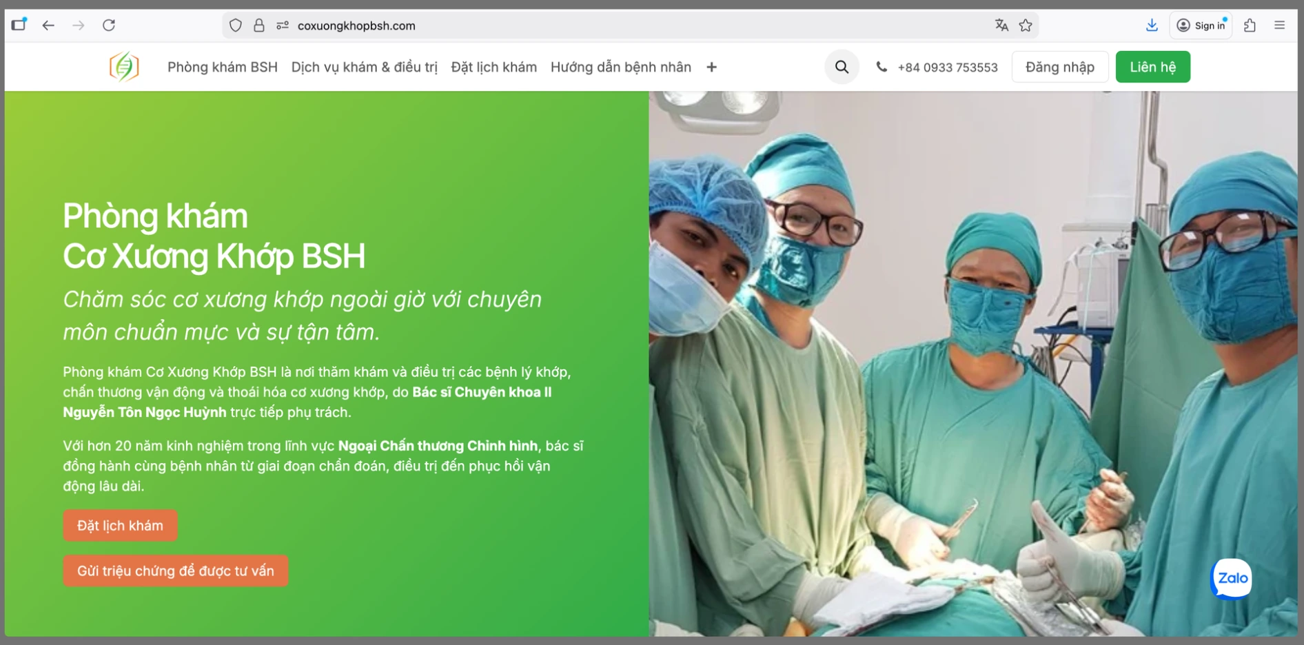 Trang chủ Phòng Khám Cơ Xương Khớp BSH được thiết kế và xây dựng dựa trên công cụ quản lý trang web của Mr.TA Pharma